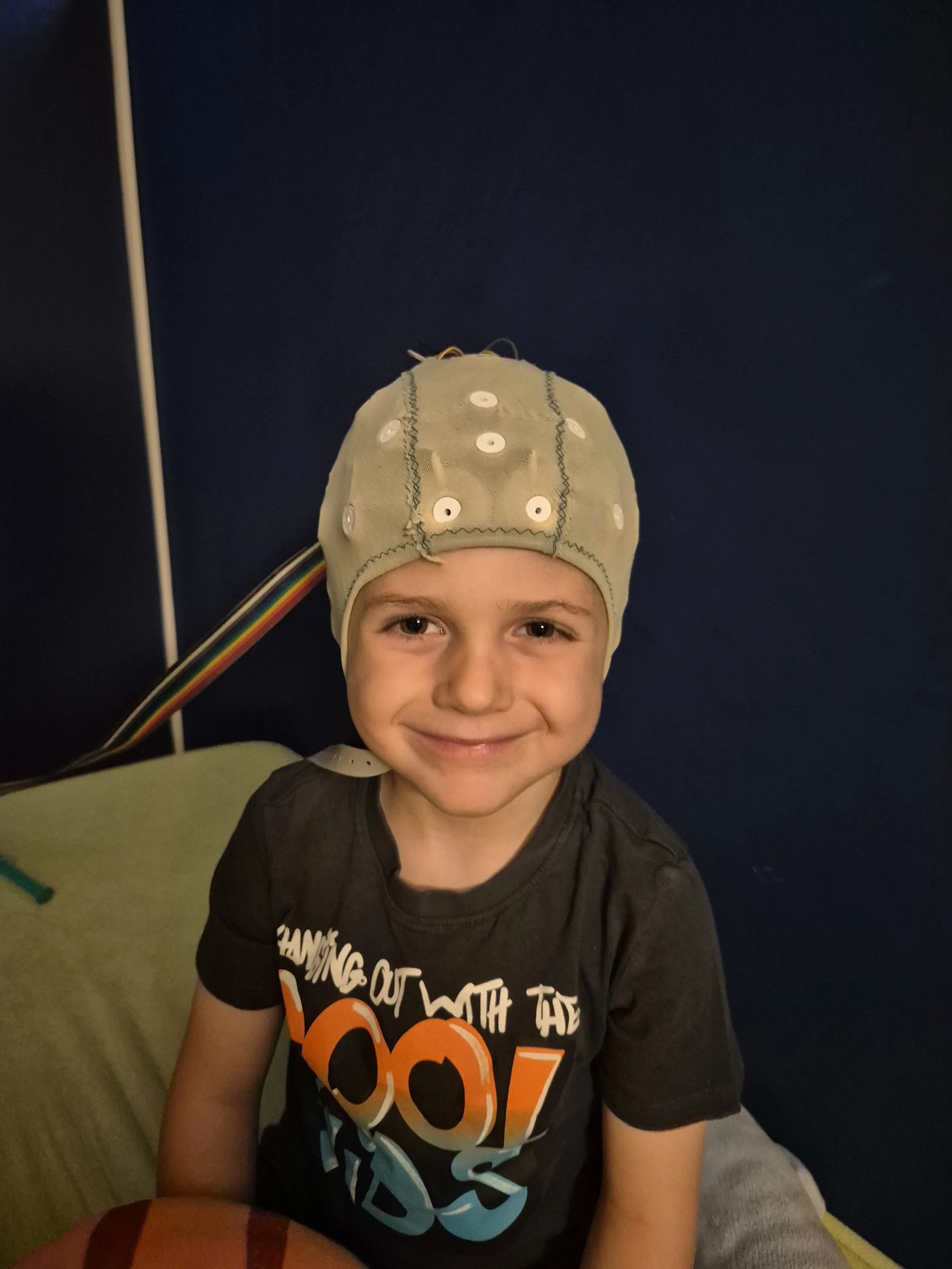 Nachdem wir das SPZ über den genetischen Befund informiert hatten, waren plötzlich viel schneller Termine verfügbar. Ein EEG zeigte, dass Felix' sehr unruhiger Schlaf oft durch fokale Anfälle und die daraus resultierenden Myoklonien verursacht wurde. Sein häufiges Stolpern könnte ebenfalls mit Epilepsie zusammenhängen, was noch untersucht wird. Auch die Abklärung von Autismus und ADHS steht noch aus.